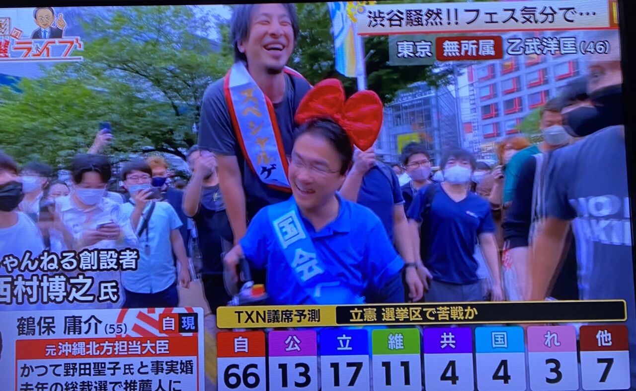 東京選挙区で、作家の無所属乙武洋匡氏の落選が確実となった。